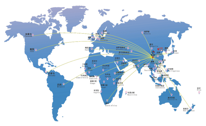 泸州老窖市场遍布全球70多个国家和地区示意图
